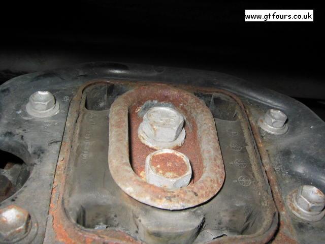 This clearly shows the 4 bush to rear sub assembly bolts, undo and remove these. Also undo and remove the 2 larger bush to diff bolts |