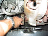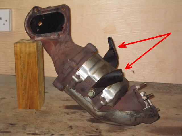 There are 2 cat mounting/support brackets; 1 on left, 1 on right. On the lhs remove this from the block, the rhs undo from cat, and completely remove the bracket later. A 165 cat is shown here with both brackets attached, this is the same securing arrangement for the 205 |