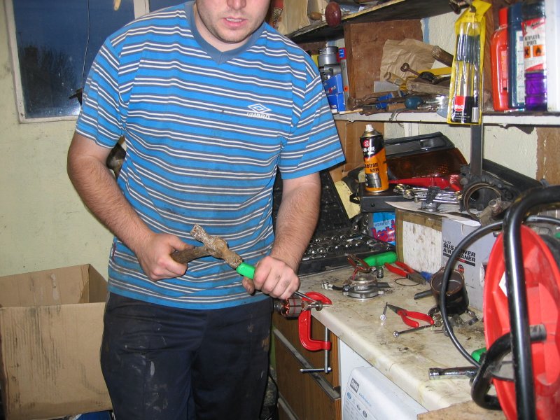 straight over. Stand the shaft up in a vice and use a large socket (I used a 27mm) over the centre housing to tap it with a hammer until it is back in place |