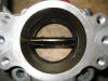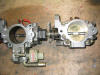 | Old TB open. Note how far the bolts protrude from the butterfly support bar, this disturbs air flow, and the ridge around the TB before the butterfly valve |