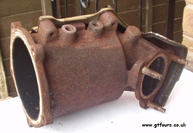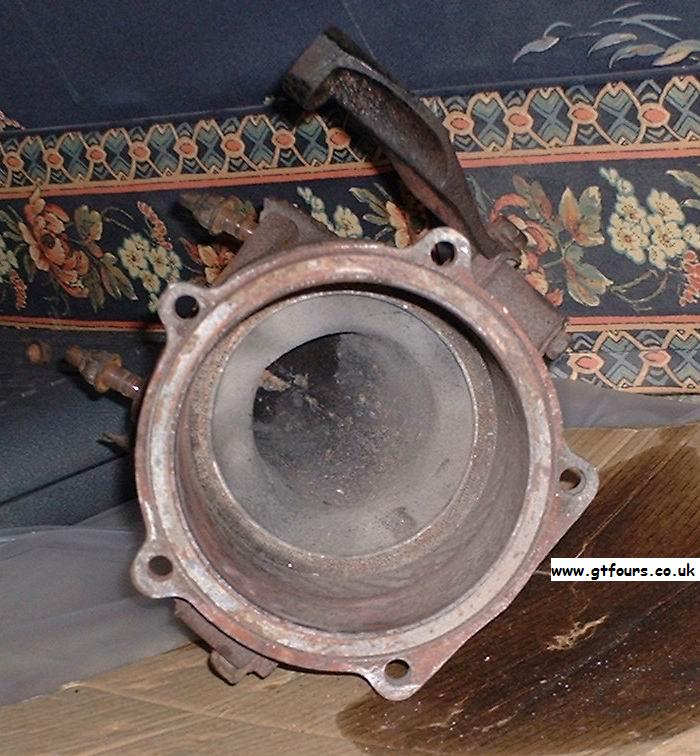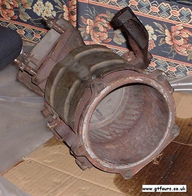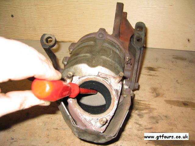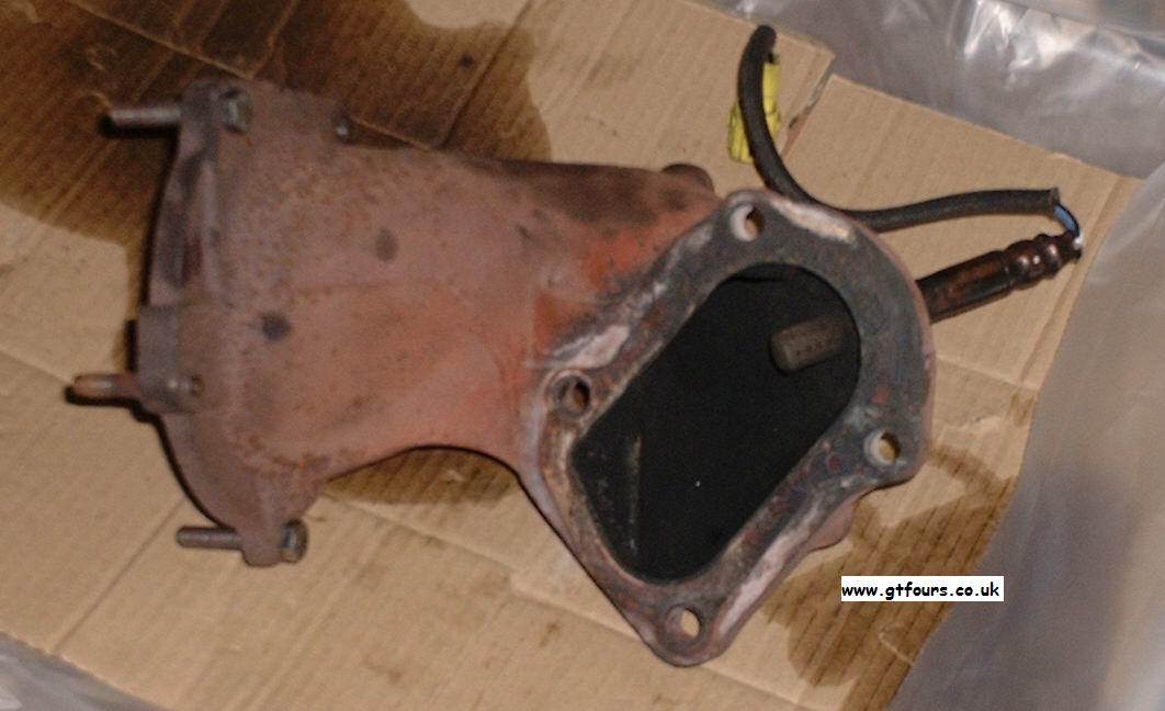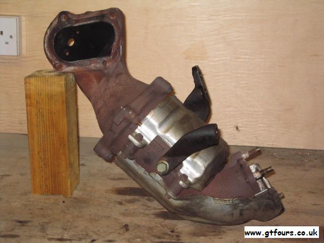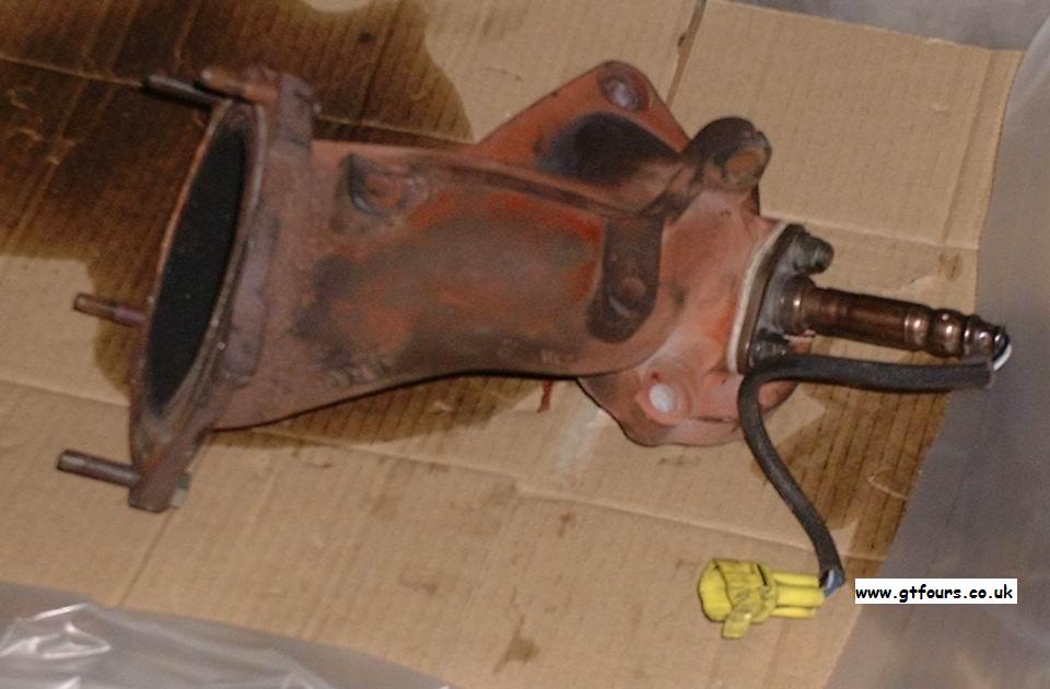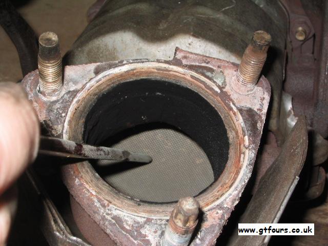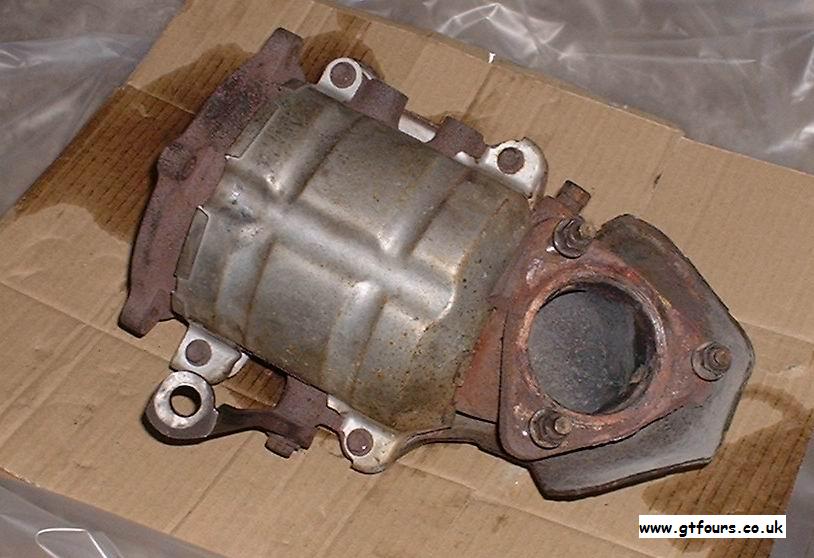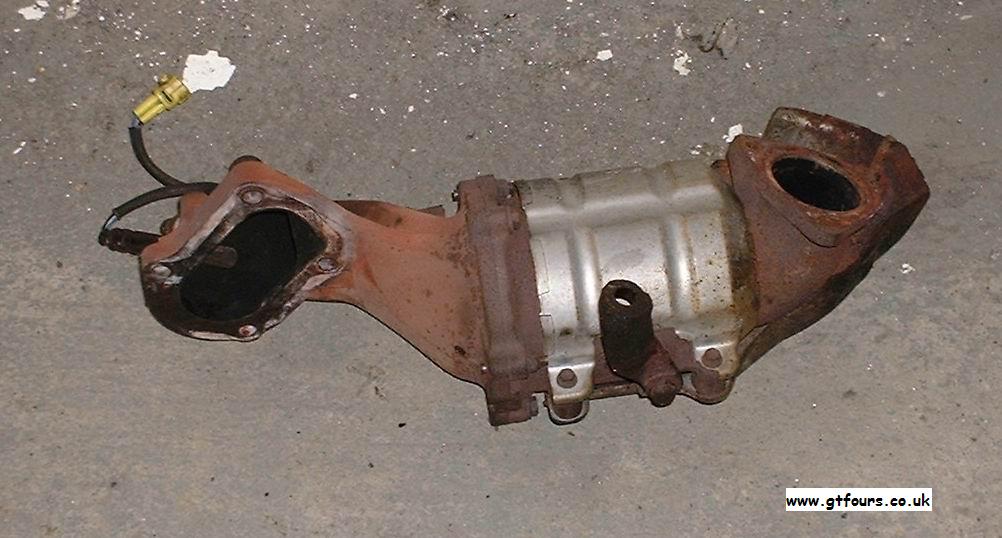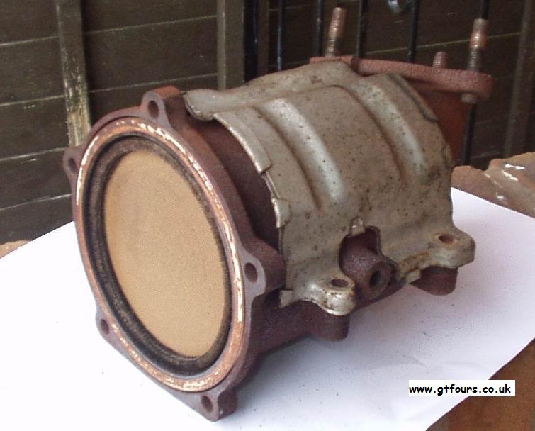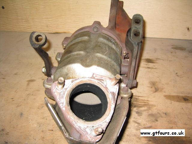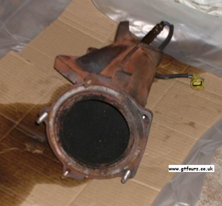 With the turbo elbow removed the innards of the cat are clearly visible |