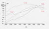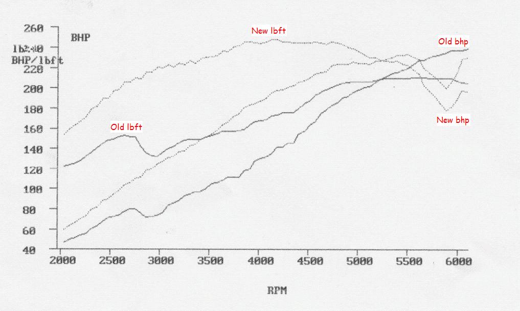 On a plus note the car gained 80+lbft in certain areas, but had a peak o/p power of 10hp less. Note the wide separation in the 2 torque curves. Had
