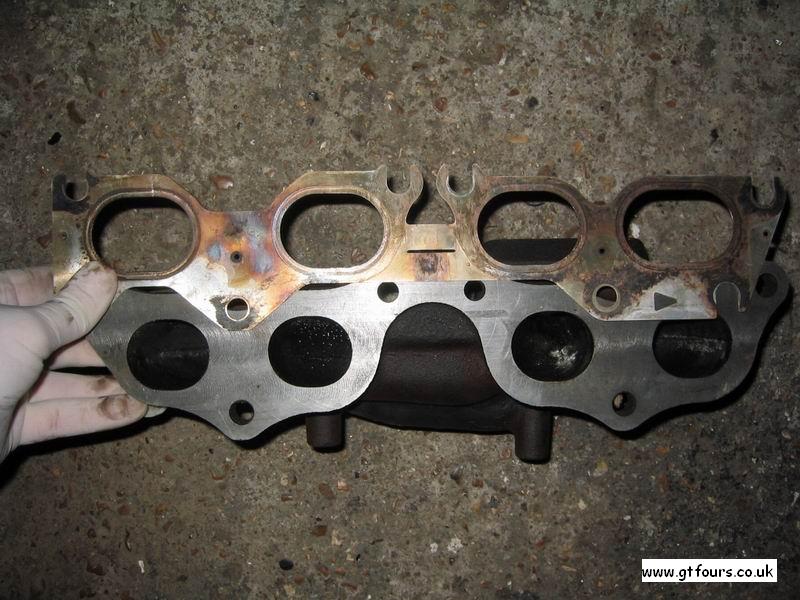 A 205 exhaust manifold gasket offered up to a 165 exhaust manifold, the differences are obvious |