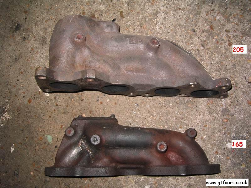 The exit from the manifold/entry to turbo is considerably different. The 205 has the twin exit design which allegedly improves turbo spool up time |