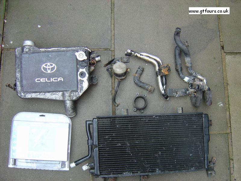 CS IC pipe work | CS IC radiator | Top of 205 IC | Annotated view. Connections were taped over to prevent dirt ingress |