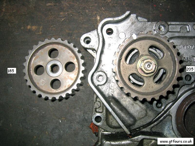 Comparison of a 185 and 205 oil pump sprocket