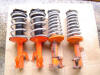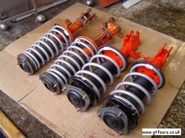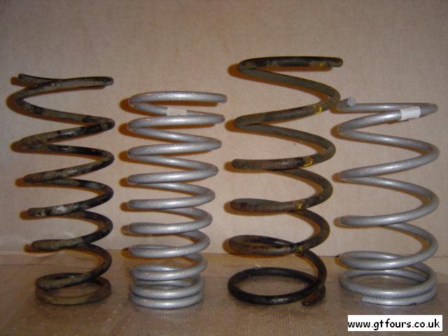 | Whiteline vs stock springs. Rear springs are on the left | Whiteline springs mounted on powder coated stock suspension legs | A different view - fronts on the rhs, rears on the lhs | Whiteline vs stock |