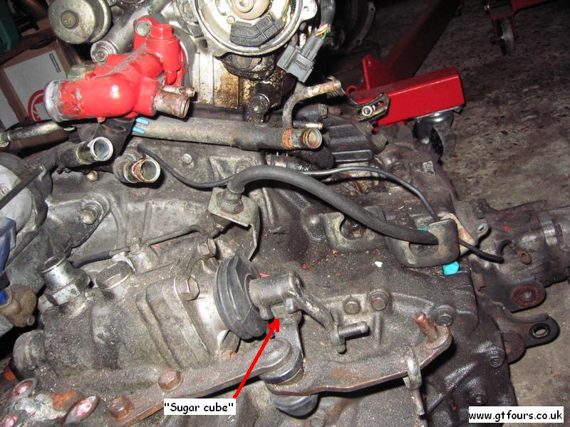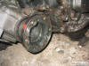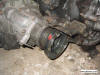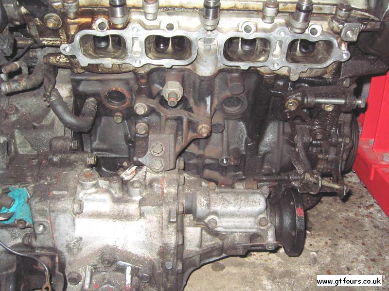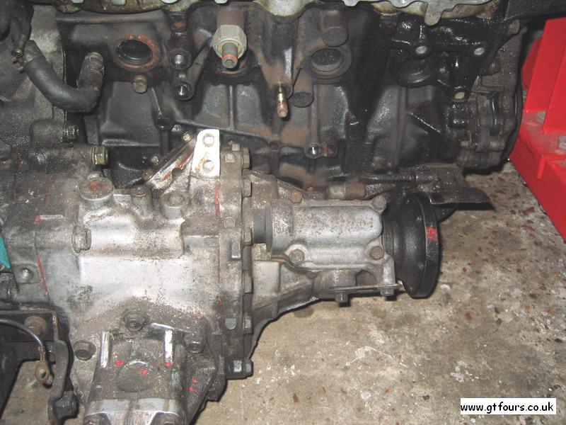 A view showing the 2 brackets securing the transfer to the engine block |