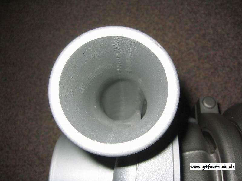 The inlet housing is wonderfully finished! This is a 46mm T04E inducer |