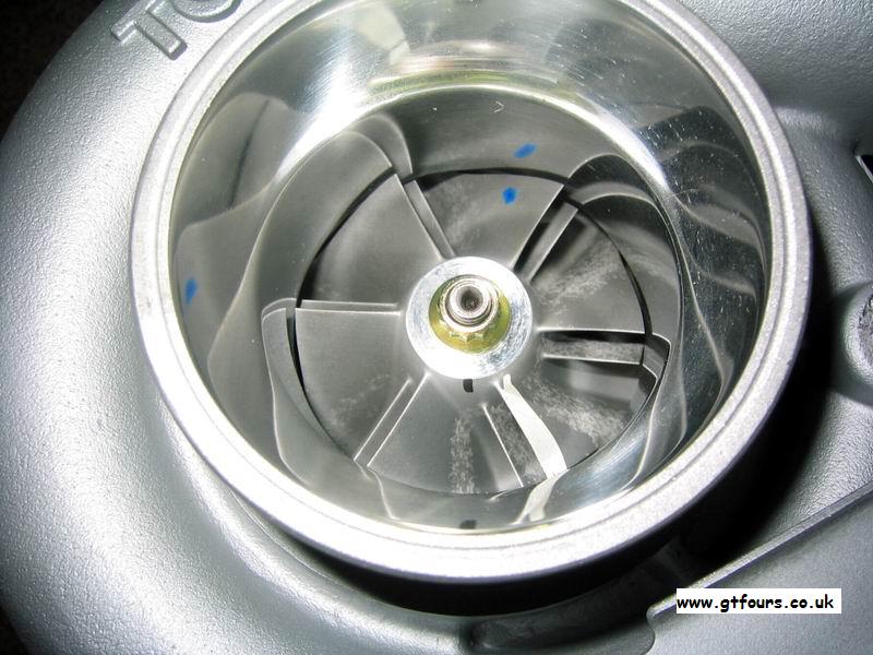 | The compressor appears to be about the same size as the 205 turbo. Apparently the CT27 is available in either 46mm or 50mm sizes |